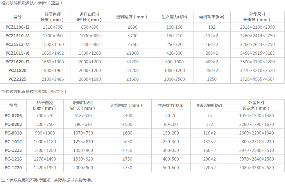 我們可以看到型號為PC-1213的錘式破碎機(jī)就是指1214 破碎機(jī);PCZ1308-II指的是1315破碎機(jī)。