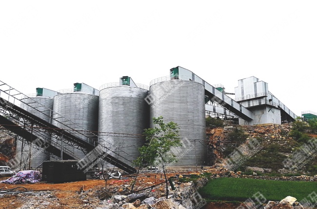 生產(chǎn)線引入中譽(yù)鼎力PCZ1615重型錘式反擊式破碎機(jī)、PC1216整形式破碎機(jī)等設(shè)備,時(shí)產(chǎn)量600噸;各個(gè)環(huán)節(jié)均采取封閉措施,杜粉塵外溢。例如在儲(chǔ)料環(huán)節(jié)引入封閉的儲(chǔ)料罐,便于分類儲(chǔ)存銷售。針對(duì)生產(chǎn)線中產(chǎn)生的石粉,加裝除塵器進(jìn)行集中收塵,后續(xù)集中利用,再次銷售。