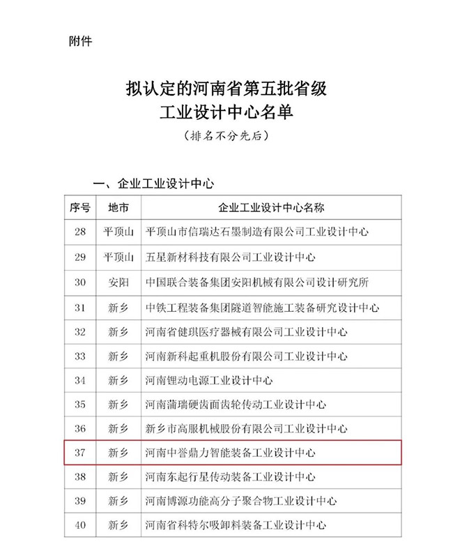 年終歲末,喜訊頻傳。根據《河南省工業和信息化廳辦公室關于組織開展第五批省級工業設計中心認定工作的通知》(豫工信辦創新〔2022〕175號)和《河南省省級工業設計中心工業設計產業園區認定管理辦法(試行)》(豫工信產業〔2015〕141號)要求,經地市工信主管部門、行業協會和評審,并經過為期8天的公示,河南中譽鼎力智能裝備工業設計中心成功獲評河南省第五批省級工業設計中心。