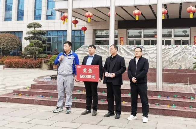 為了進一步鼓勵廣大鼎力員工積創新,推動車間生產降本增效,提升礦山設備成品質量,3月20日晨會期間,中譽鼎力總經理楊乾代表公司對“磨床技改”項目團隊獎勵現金50000元,毛寶華、王衛生、桂禮明作為“技改先鋒”代表領獎。