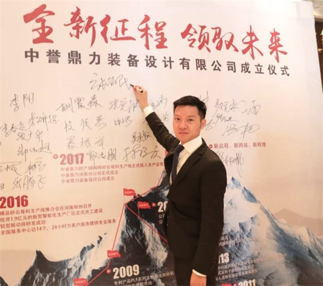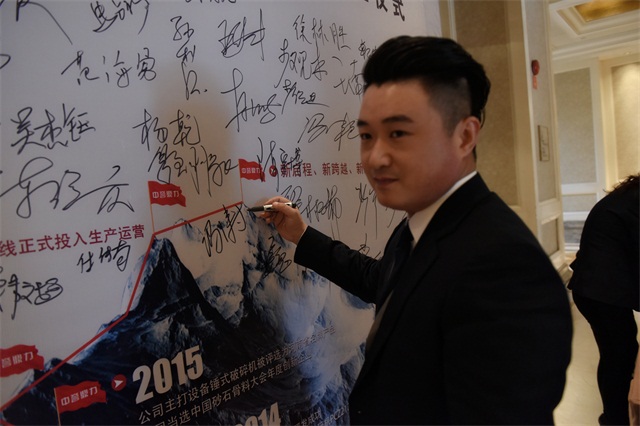 中譽鼎力裝備設(shè)計公司總經(jīng)理馮濤在簽字墻上簽名