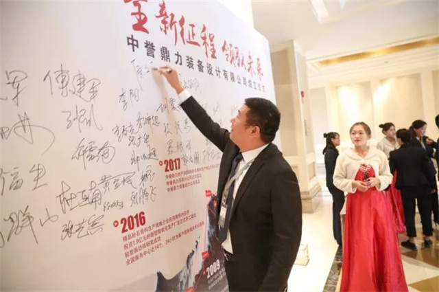 中譽鼎力裝備設(shè)計公司董事長張治民在簽字墻上簽名