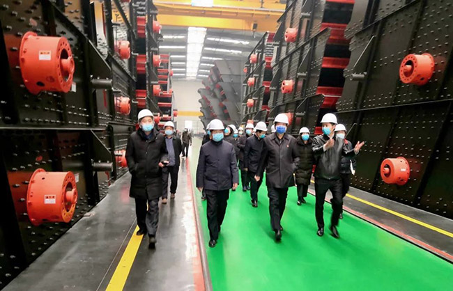 在中譽(yù)鼎力智能裝備公司廠區(qū),張治民董事長(zhǎng)向各位導(dǎo)詳細(xì)匯報(bào)公司復(fù)工復(fù)產(chǎn)情況,并介紹中譽(yù)鼎力“五位一體”循環(huán)建材產(chǎn)業(yè)園及一體化智能生產(chǎn)車間。