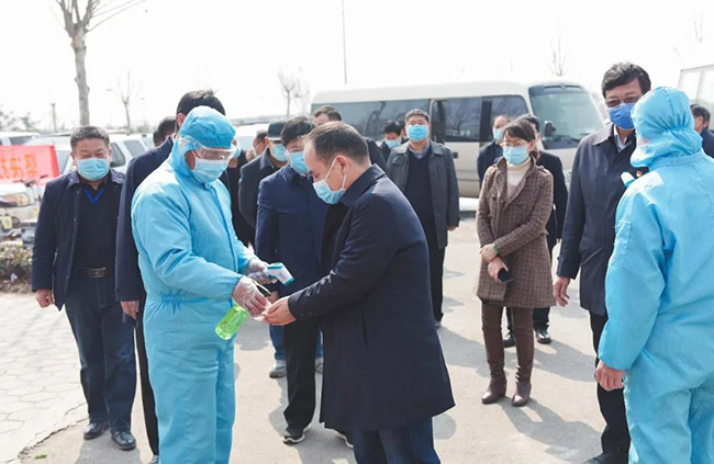 3月6日上午,河南省服務(wù)企業(yè)復(fù)工復(fù)產(chǎn)工作專班督導(dǎo)組成員:省發(fā)展改革委二級巡視員石新寬、省項目辦主任科員朱樂意、省運(yùn)輸事業(yè)發(fā)展處長徐彩琴、省地方金融局調(diào)研員陳忠慶,在新鄉(xiāng)市人大常委會副主任職偉、新鄉(xiāng)市副秘書長李中耀、新鄉(xiāng)市發(fā)改委主任張文慧,以及市工信局、衛(wèi)健委、人社局、交通局、金融局分管負(fù)責(zé)導(dǎo)的陪同下,蒞臨中譽(yù)鼎力指導(dǎo)疫情防控及復(fù)工復(fù)產(chǎn)工作。