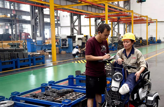 7月22日上午10點(diǎn),中譽(yù)鼎力智能裝備生產(chǎn)車(chē)間機(jī)加工區(qū)新到了一批外協(xié)件,張衛(wèi)霞坐在電動(dòng)三輪車(chē)上依次仔細(xì)地檢查著每一個(gè)零部件:觀察、測(cè)量、記錄、填單……嚴(yán)謹(jǐn)?shù)馁|(zhì)檢流程沒(méi)有因?yàn)槟_受傷而有所耽誤。