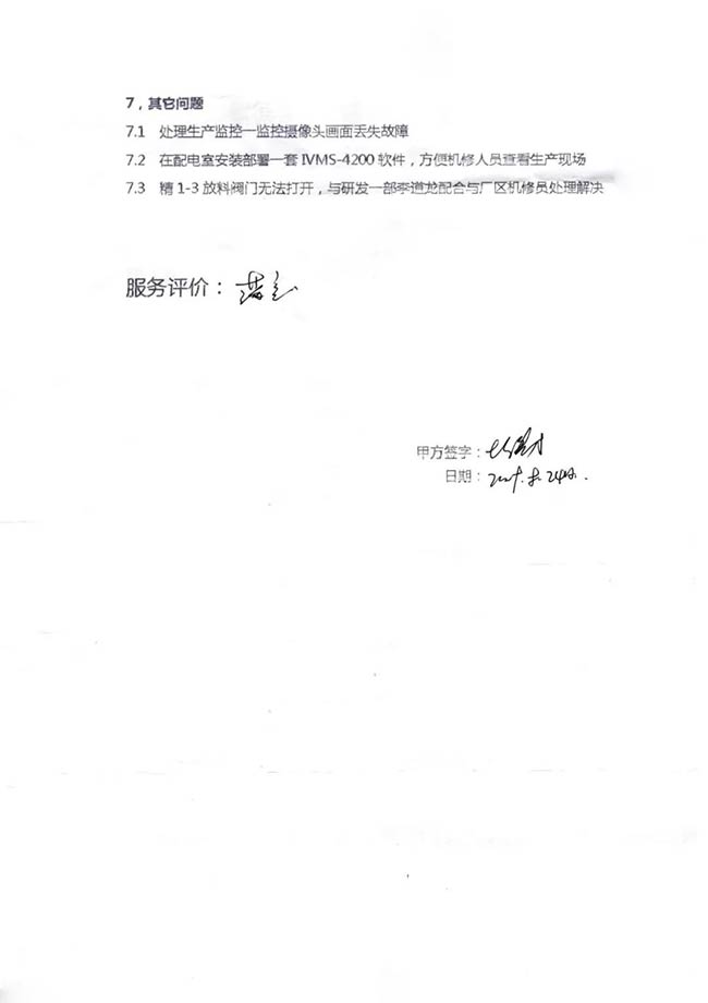 與客戶打交道的過程,不僅有電氣成套設備、低壓配電柜、礦山骨料生產線的管理軟件的安裝調試,還有監控設備工程、電氣工程的施工等等。咨詢,設計,施工,調試,維護,培訓……如何做到每一個環節都精益求精,達到客戶要求?完善的質量管控和服務體系不可少。而“項目服務單”就是其中一項重要措施,記載并參與了服務的過程。