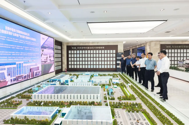 調研組一行先后參觀了中譽鼎力綠色建材大數據、十二位一體綠色建材循環經濟產業園沙盤,并觀看中譽鼎力企業介紹視頻。