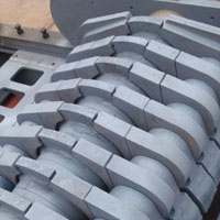 采用熱復(fù)合雙金屬高鉻合金錘頭,并且加長錘頭合金,利用率更高,并且縮小錘頭與錘頭之間縫隙,避免錘頭側(cè)面磨損